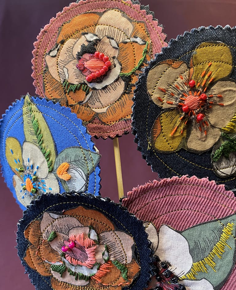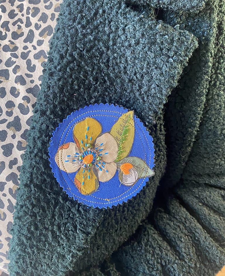 | Matériaux | Tissu et Coton upcyclés. Petits détails brodés à la main : fil de coton mouliné et coton perlé et perles de rocaille. |