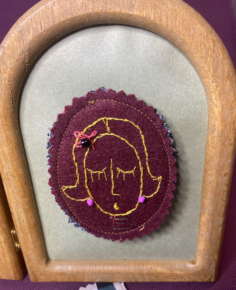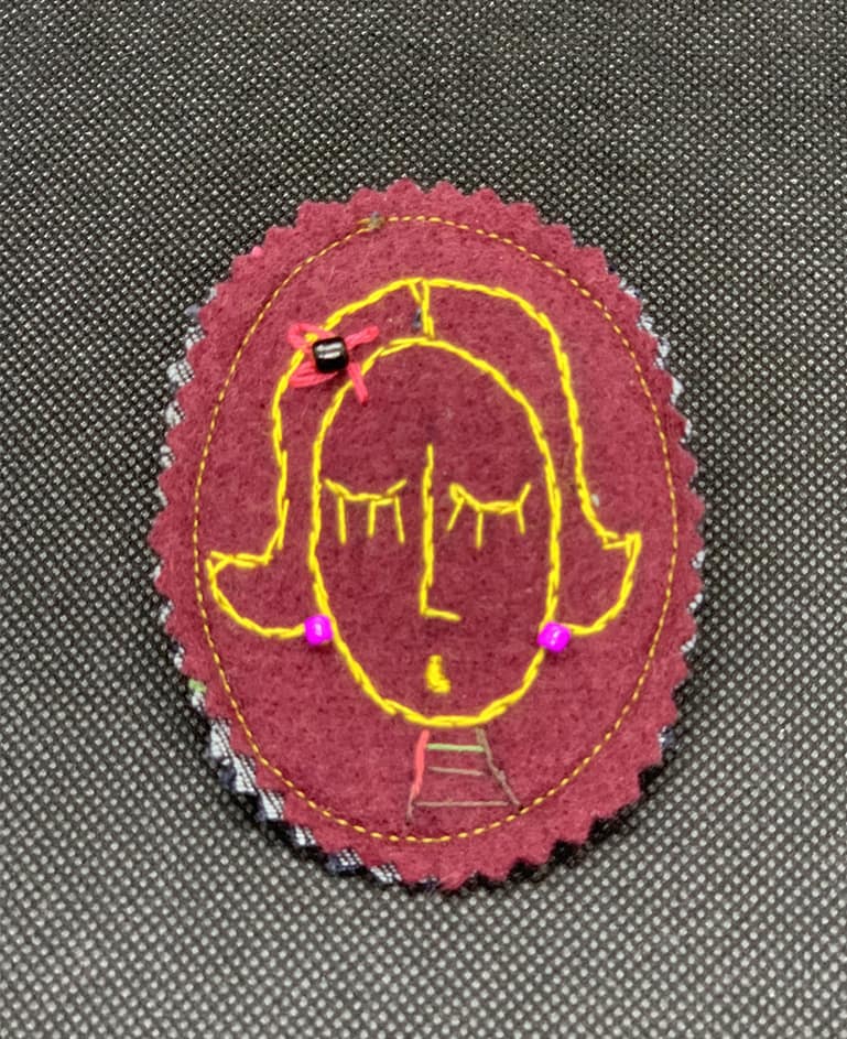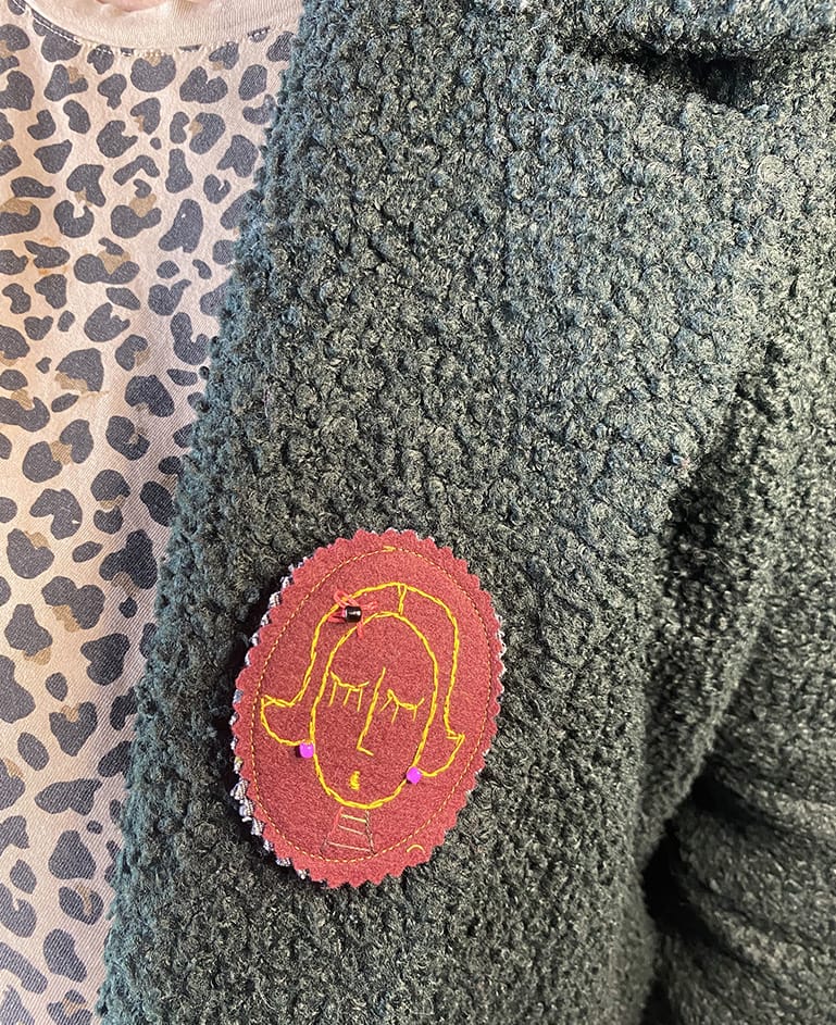 | Matériaux | Tissu et jean upcyclé. Petits détails brodés à la main : fil de coton et perles de rocaille. |