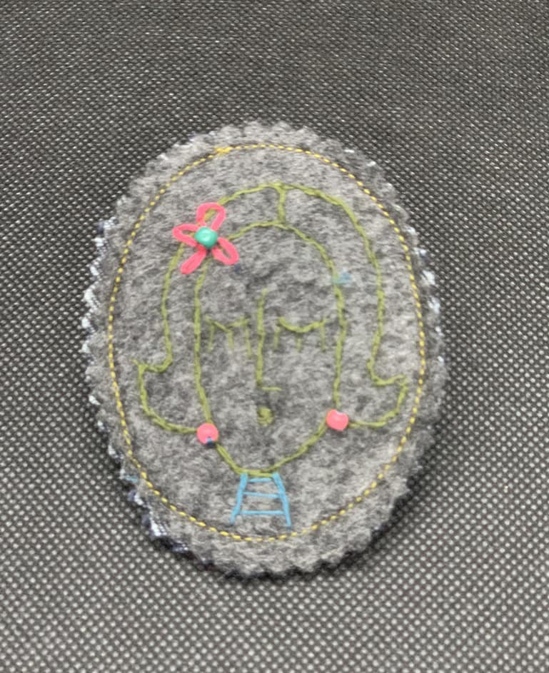 | Matériaux | Tissu et jean upcyclé. Petits détails brodés à la main : fil de coton et perles de rocaille. |